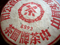 8892の「2」は、雲南孟海茶廠を意味します。1990年代後半まではお茶づくりが限られた国営企業にだけに認められており、孟海茶廠や下関茶廠から商品が出荷されています。中には「水藍印七子餅茶70年代」のように、孟海茶廠から小さな工房へ圧延加工を委託したケースもあります。餅身(餅茶の形)の大きさからしてこのお茶は古くからある石型の圧延を易武山の工房に委託したものと思われます。