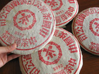 王曼源氏のお茶を扱う代理店が上海にもありますが、そのお店の話によると上海にも倉庫があり、そこでも「第一批」と呼ぶのを保有しているそうなので、当店が仕入れた香港経由のものとは多少風味が異なると思われます。このように保存環境によっても風味の変化が異なるのがプーアル茶の面白いところでもあります。