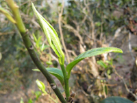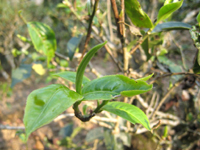 古茶樹は枝ぶりのわりには葉が少なく、ぱっと見た目は貧相です。新芽や若葉も密集しないでスカスカしています。その分、一枚一枚の葉にたっぷり栄養をたたえています。