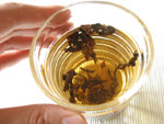 茶葉がまだ乾いているうちは水面に浮きますが、やがて沈んでゆきます。
