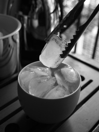 それが少し冷めるのを待ってから、コップ一杯に氷をたくさん入れます。