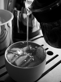 まずは熱湯でやや濃いめのお茶をつくります。