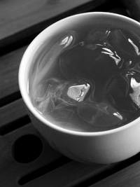 2.氷の上から濃いお茶を注ぐ