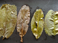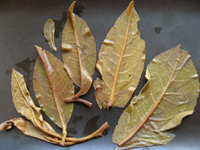 少しおおきめの茶葉のまわりの、ギザギザした(鋸歯きょし)は、同じく易武山の古茶樹のそれともよく似ています。