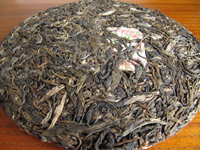 「真淳雅號圓茶」は1996年と2000年に作られています。2000年の品を試飲したところ、香りに特徴がなく、殺青の工程での煙味がありました。さらに揉捻はそれほど念入りではないことが餅面(餅茶の表面の茶葉の様子)から伺えました。これらは春の遅い時期の茶葉であることや、茶葉を選ばずに農家がつくり置きした毛茶を買い取っただけのもので、特別なつくりかたをされたものではないことを現わしています。当店本部での取り扱いの予定はありません。ただし価格もそれなりで1996年の品の10分の1ほどの価格です。
